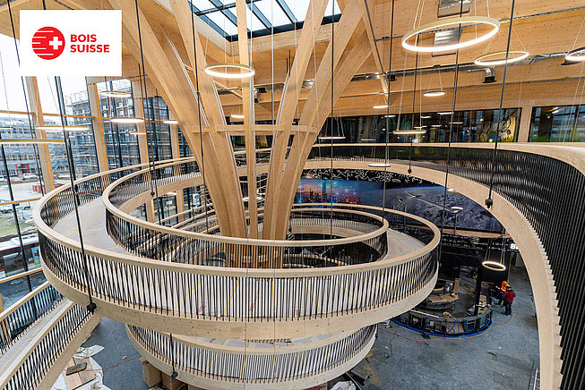 Qui construit aujourd’hui le futur se préoccupe d’une utilisation mesurée des ressources dans la réalisation des édifices et leur exploitation. Lorsqu’il existe des exigences architecturales et esthétiques élevées ou lorsque l’énergie grise entre en jeu, le bois est au rendez-vous, par exemple pour les ouvrages de la société à 2000 Watts.