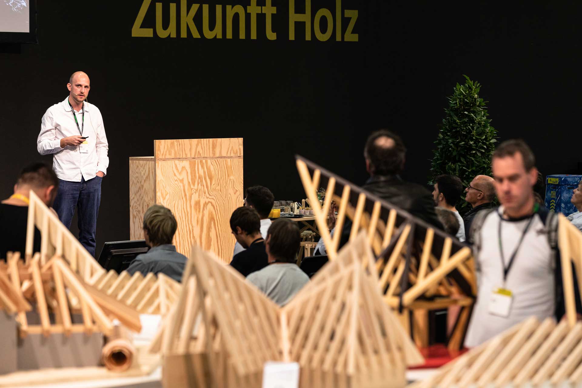 Parmi les 368 exposants figurait le stand Lignum, animé pendant les 5 jours par son équipe pour informer la filière au sujet de BIM Lignumdata, du Label de qualité Lignum bardages en bois, ainsi que les avantages du bois suisse. Le 17 octobre, la journée co-organisée par la FRECEM était placée sous le signe de la Suisse romande et l’occasion de s’informer de l’avancée de la recherche. « Nouvelles matières et technologies, nouveaux procédés. Quels nouveaux marchés pour les entreprises du bois? » telles furent les problématiques débattues par les chercheurs de la Haute école spécialisée bernoise BFH Marion Sanglard et Frédéric Pichelin, aux côtés de Eric Müller, Directeur de Fagus Suisse SA, François-Xavier Cordier, CEO de Lekolabs et modérées par Cédric Höllmüller de la Haute école spécialisée bernoise BFH. Un témoignage d’experts a également réuni Frederic Pichelin, Eric Müller, Cédric Höllmüller (toujours en modérateur) avec Jérôme Gillioz (Menuiserie Balmer & Gillioz SARL) et Ilias Zinstag (Président EPUR SA) autour de la question des perspectives et des obstacles à l’innovation.