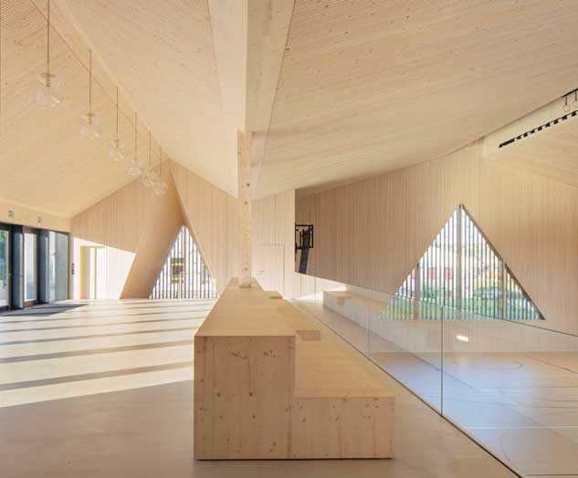 Après avoir sélectionné l’année dernière la tour en bois The Tallwood House située à Vancouver, le jury international a récompensé une salle polyvalente à la volumétrie triangulaire réalisée en bois local. Le Prix International, qui porte sur la distinction d’une architecture bois exemplaire, a été remis le 4 avril 2019 à l’architecte Laurent Saurer de l’agence Localarchitecture basée à Lausanne et à l’ingénieur bois Marcel Rechsteiner de Ratio Bois, en tant que porte-paroles de tous les acteurs impliqués dans la réalisation de ce nouvel emblème de l’architecture bois suisse.